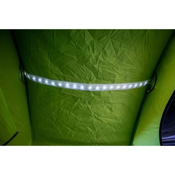 Get set up quicker and start enjoying the sunshine with the Coleman Traveller Instant Light 4 person tent. It’s designed to set up in minutes, and once it’s up it’ll protect you from the weather with a 1500mm water rating. The interior uses Darkroom tech which blocks out 95% of light, giving you a great night’s sleep. It has integrated strip lighting with LED lights for when it gets dark, with an easy light switch to control the lighting. Perfect for your next camping trip.