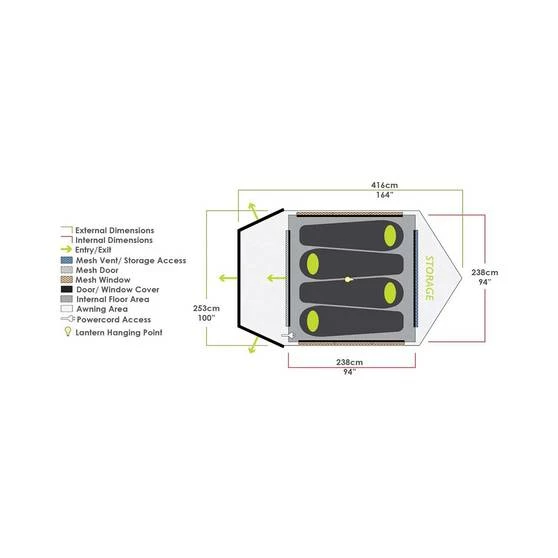 - Protected storage area at rear – easy to access from inside tent