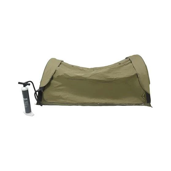 - Includes high capacity hand pump, swag bag, pegs and guy ropes