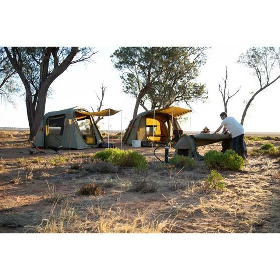 2 large storm covers can be converted into awnings (poles sold separately) for added cover in all weather conditions. Super fine mesh will keep the mozzies and other bugs at bay making sure you get a comfortable night’s sleep. The 50mm high density foam mattress has a removable cover making it easy to wash when you get home from your adventures. It all packs away neatly into the included swag bag ready for the next time you go off grid.