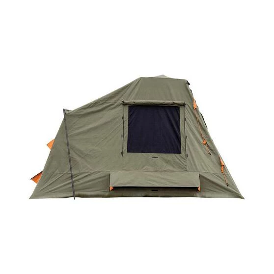 It also includes a large zip on awning and awning poles for added shade and protection from the weather. The large rear window storm flap also includes eyelets giving it the ability to be used as an awning also. Super fine mesh on all the windows and doors will keep the bugs away while still allowing a nice cool breeze through the tent. So if you are looking for a classic old school canvas tent that ticks all the boxes, the Darche Safari 350 is perfect for your next outdoor adventure.